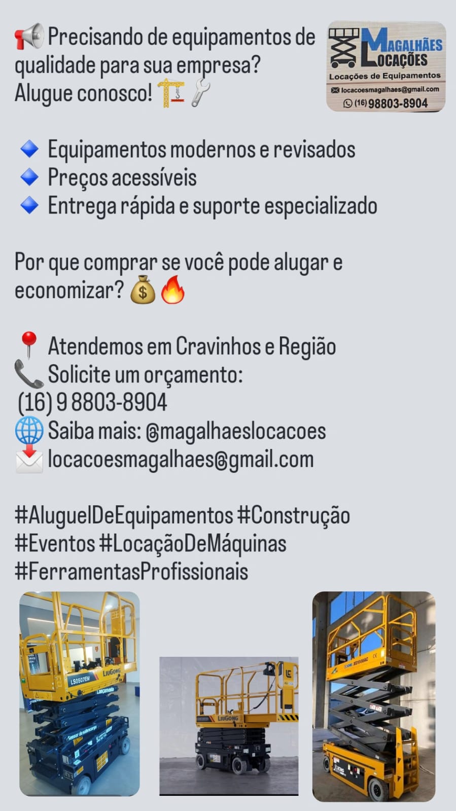 Equipamentos para locação para que. Entregamos e retiramos essas plataformas.
